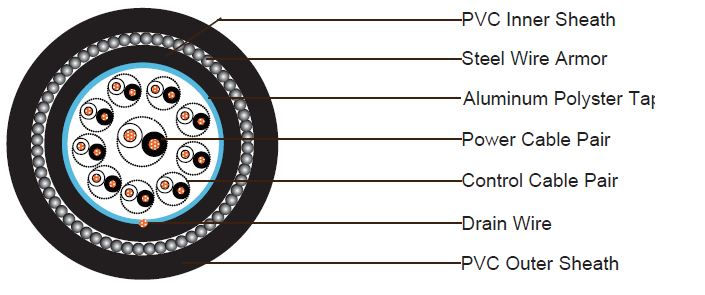 1x2x2.5 Power Cable + 9x1x2x1.0 Control Cable SWA PVC Sheathed Composite Cable