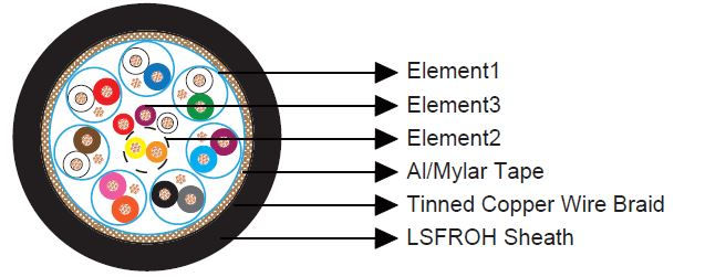 Element Assembly Overall Screen Aluminum/ mylar tape Braid Shield Braid of tinned copper wire. Coverage ≥ 85% Outer Sheath LSFROH elastomeric sheath,Thickness 1.0mm. Outer diameter 12.5+1mm, other materail is optional Sheath Color Black or as per the client’s requirement